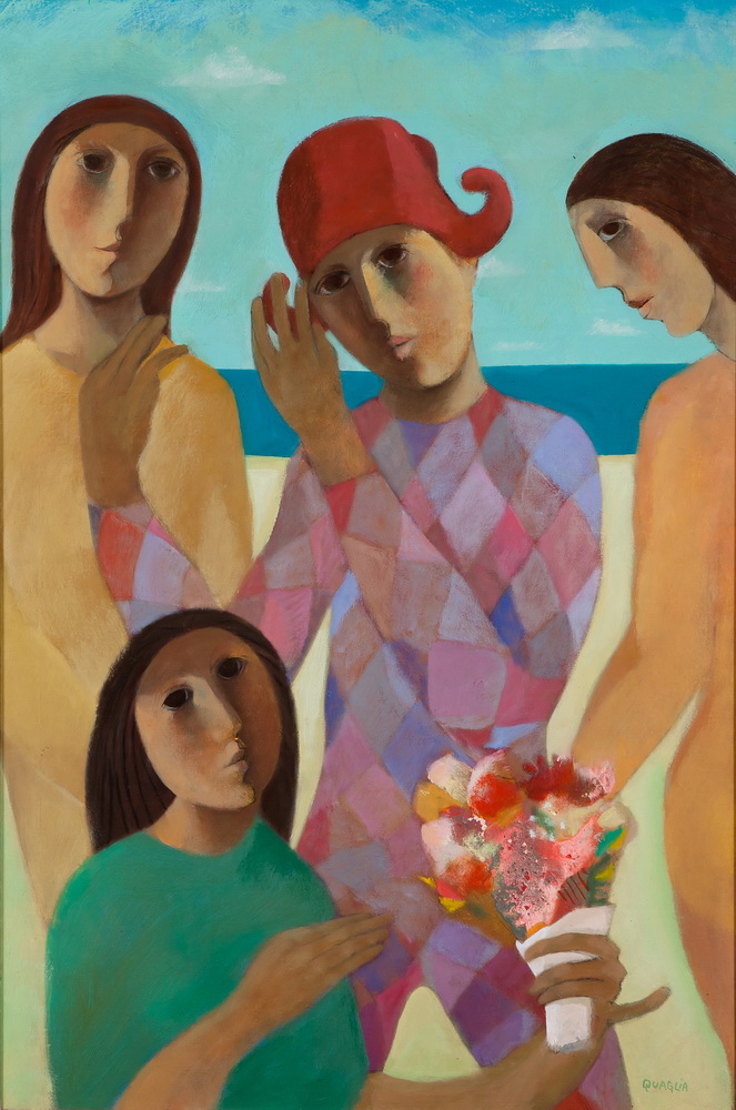 O próprio Quaglia, a respeito da sua arte, assim se define: “meus quadros não precisam de mapa para serem compreendidos. Não gastam muita literatura para explicá-los. São só um poema visual. Na verdade eu me sinto um poeta que usa a pintura para me comunicar. A beleza também é um objetivo ou ideal que persigo no meu fazer artístico. Penso, como Hegel, que o belo artístico é um infinito representado pelo finito”.