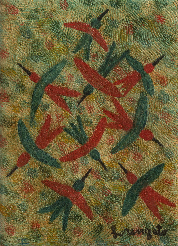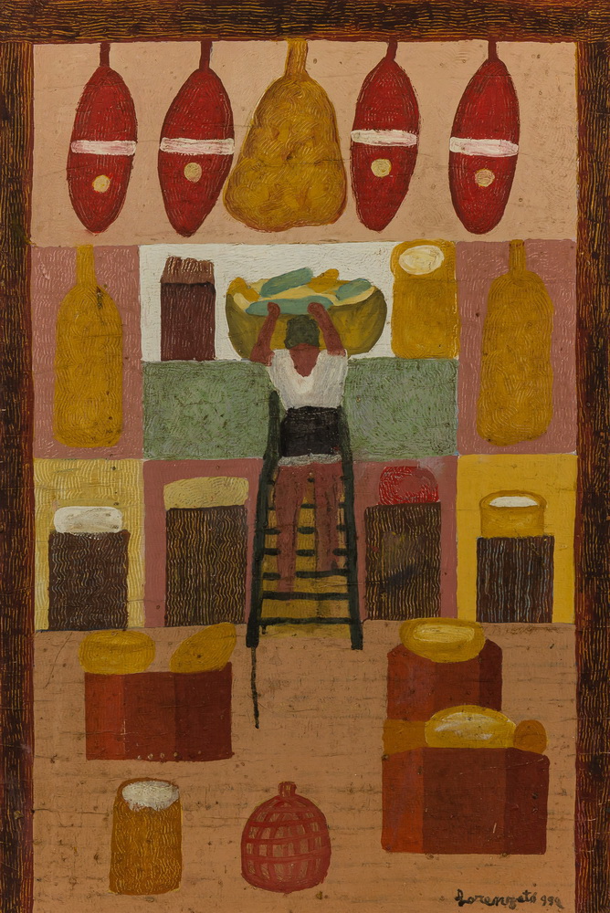 Jamais se saberá o real propósito dessa viagem, posto que ele nunca contou direito (de Bach a Burroughs, de Brancusi a Kerouac, a história da arte está permeada de peregrinações iniciáticas). Seja qual tenha sido o motivo, viu muita arte em museus, em igrejas e pelas ruas, o que se depreende examinando sua extensa e complexa obra. É certo que saiu daqui senhor do seu ofício de pintor de paredes e, quando começou a pintar, já na Itália, as duas práticas entraram em sintonia, mesmo após sua aposentadoria da construção civil.